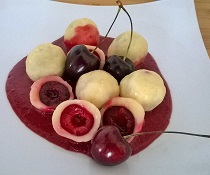 Půlky švestek naplníme Gervaisem smíchaným s čerstvým koprem a přidáme kousek uzeného lososa, můžeme ozdobit koprem.