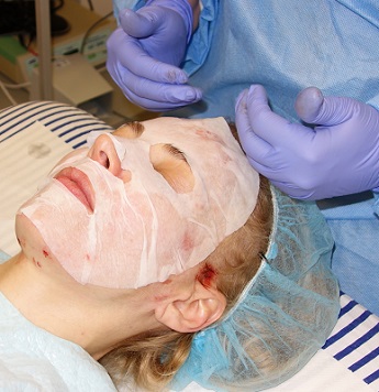 Po zákroku byla na obličej aplikována zklidňující maska a červené světlo k nastartování hojivého procesu.