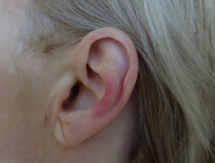 Foto 32: Hematom na ušním boltci z nepadnoucí ohlávky, byl bolestivější než samotný zákrok