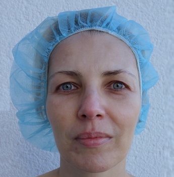 Lifting obličeje byl zakončen zvednutím oblasti čela 4 krátkými liftingovými nitěmi.