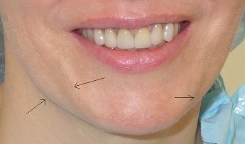 Foto 47-48: Nadzvednutí a zúžení oblasti kolem brady, vytvoření mladistvější linie okraje dolní čelisti.