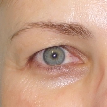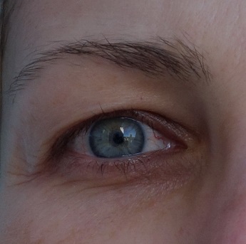 Foto 45-46: Rozdíl míry poklesu víčka před zákrokem, kde víčko leží na řasách, horní okraj víčka není vůbec patrný, a po zákroku. Navíc jsme při focení po 3 týdnech bojovali se špatnými světelnými podmínkami, fotili venku a díky sluníčku bylo oko zamhouřené, každý "stařecký" projev je při zamhouření více patrný, i přesto je výsledek na fotce zřejmý.