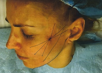 Provádí se pomocí liftingových, obličej zvedajících nití. Nitě zvedají partie, kterými procházejí směrem nahoru a do stran, stejně jako se napíná kůže při liftingu operačním.