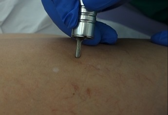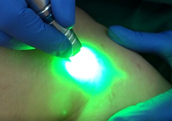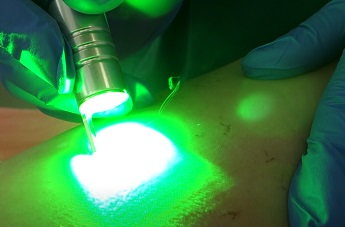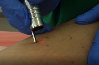 Foto 19: Závěrečné ošetření po cévním laseru. Po zákrocích je vhodné absolvovat lymfoterapii.
