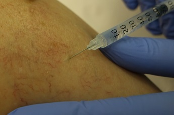 Po aplikaci sklerotizující látky aethoxysclerol 0,5% - 1% do viditelných cév v podkoží dojde k uzavření přítoku krve do ní, žilka viditelně vymizí - viz dvojice fotek vlevo (patrná žilka, kterou chceme sklerotizovat) - vpravo. (vymizelá žilka). Céva zanikne a přemění se ve vazivo. Jenom připomeneme, že před sklerotizací je potřeba mít vyšetřený hluboký cévní systém. Režimová opatření po výkonu (oblečení kompresních punčoch a 2 hodiny permanentní chůze bez zastavení) jsou popsána v předchozím textu o sklerotizaci.