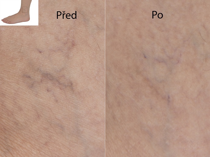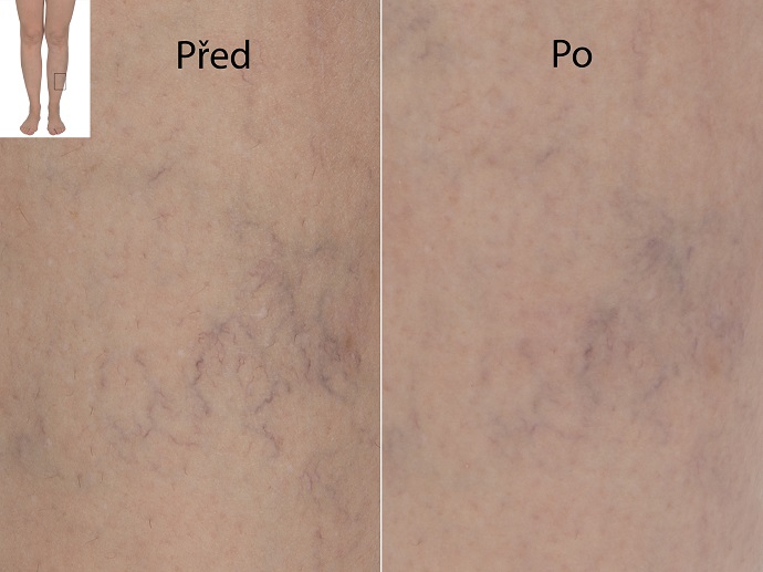 Video zachycuje třífázové odstranění žilek na nohách v průběhu pěti týdnů, některé z nich již byly pro sklerotizaci hraniční. V první fázi byla provedena sklerotizace, za 3 týdny po ní druhá sklerotizace a první fáze působení cévního laseru na žilky. Za dva týdny proběhl druhý laser. Výsledky před a po jsou patrné i z fotografií. Po zhojení modřin a jizviček po laseru je ve skutečnosti rozdíl stavu před a po ještě patrnější.