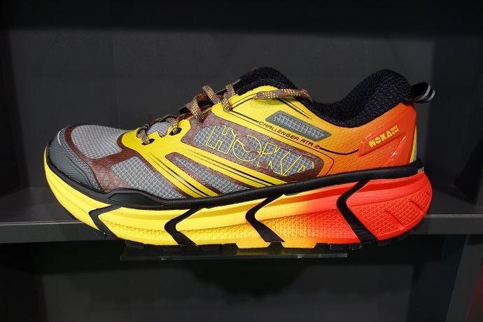 Foto 1: Srovnání silniční a krosové boty, kde je s černou podrážkou bota krosová pro běh měkkým terénem a se žlutou bota silniční pro tlumení nárazů při běhu na tvrdším povrchu.