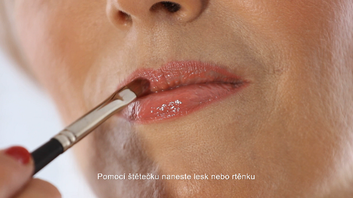 Pomocí štětečku naneste lesk na rty nebo rtěnku.