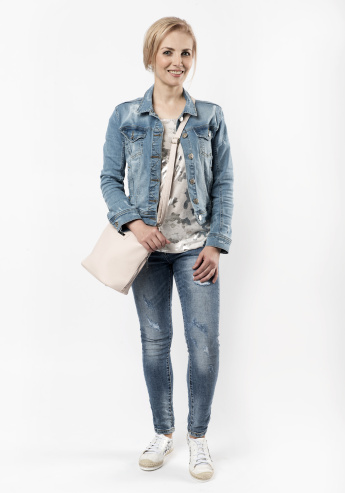 Ženy po 40 nemusí nosit jenom saka, mohou outfit oživit džínovou bundičkou, která je trendy již několik let, několik sezón po sobě a model tak bude vypadat mladistvější. Džínovou bundou můžeme doplnit jak rifle, nebo normální kalhoty, tak elegantní šaty s lodičkami, jak uvidíte v kolekci níže.