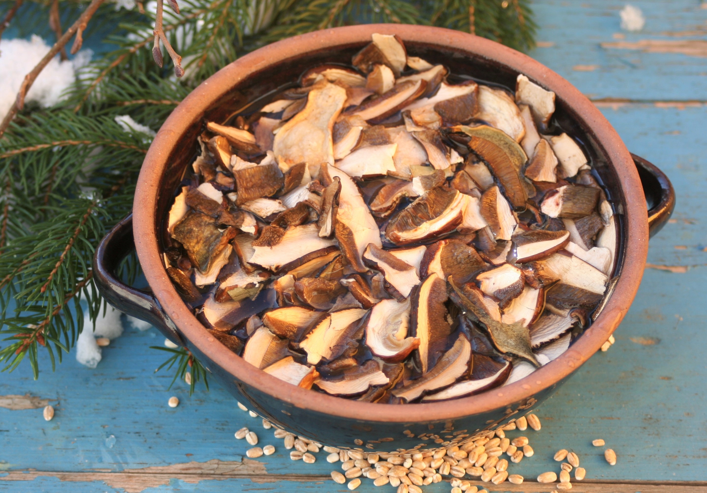 2. Sušené houby přes noc namočíte. Stejně tak namočíte i kroupy.