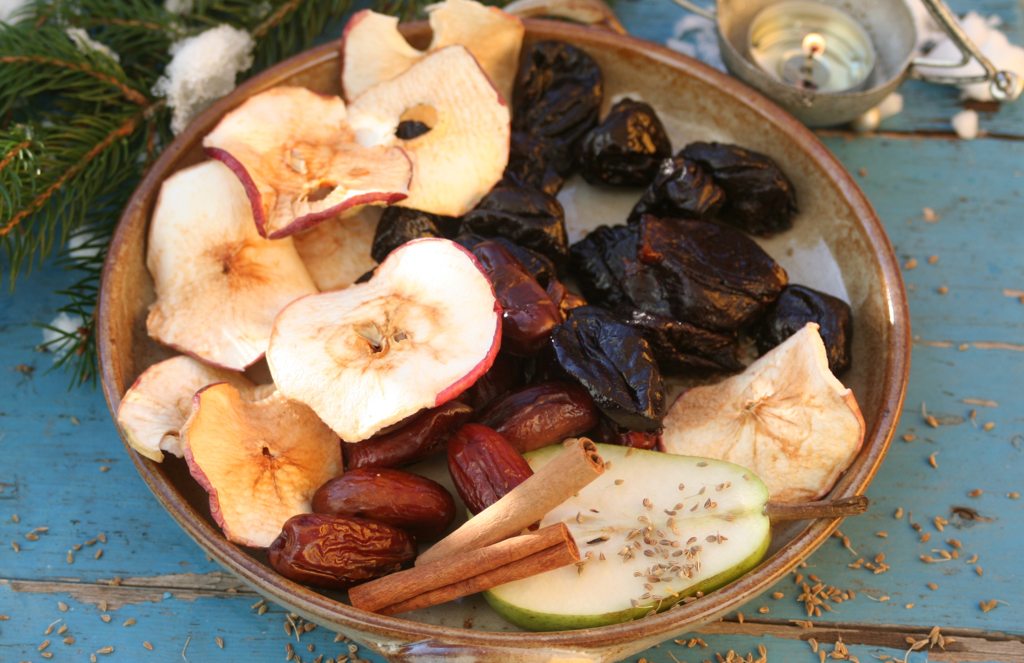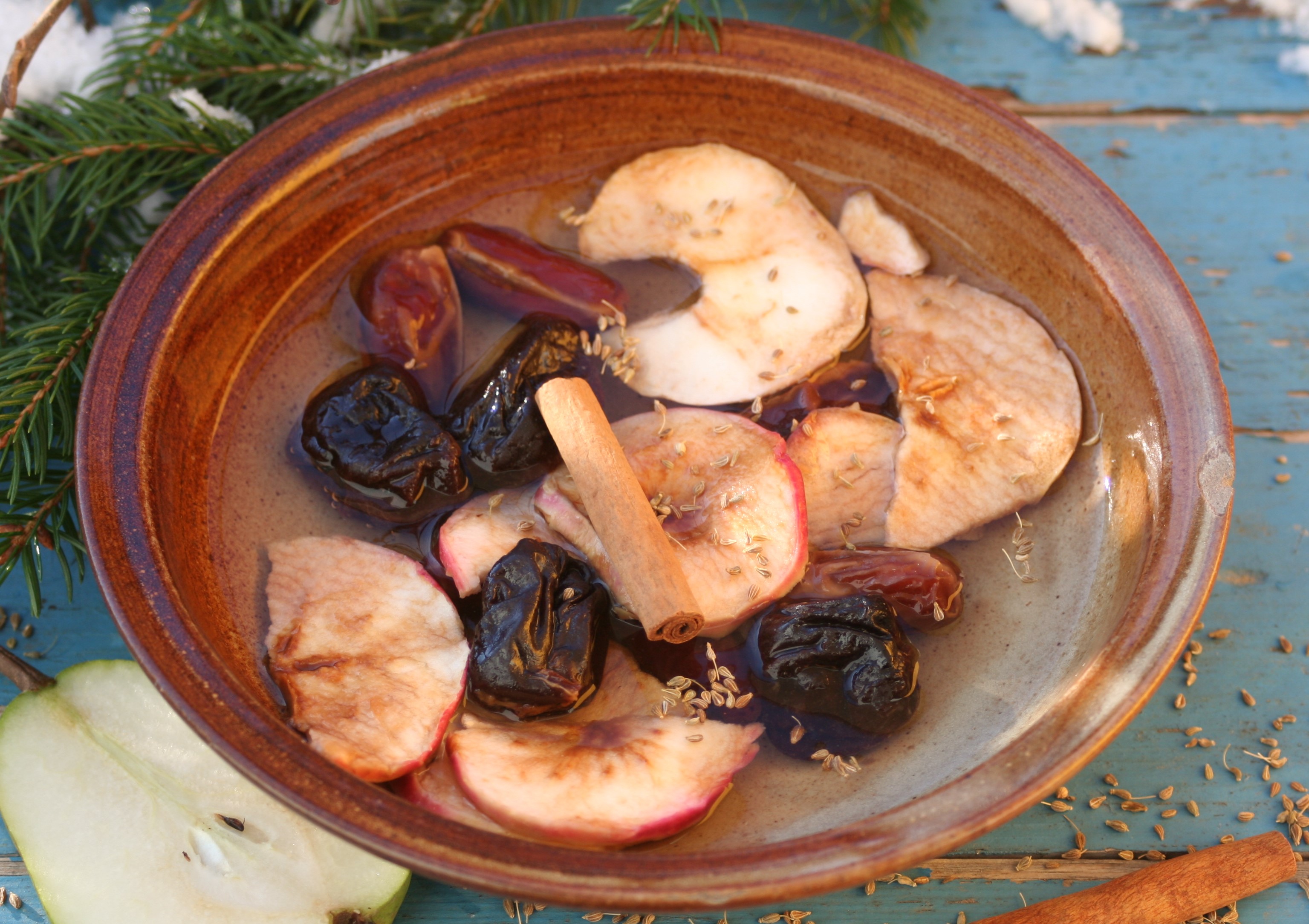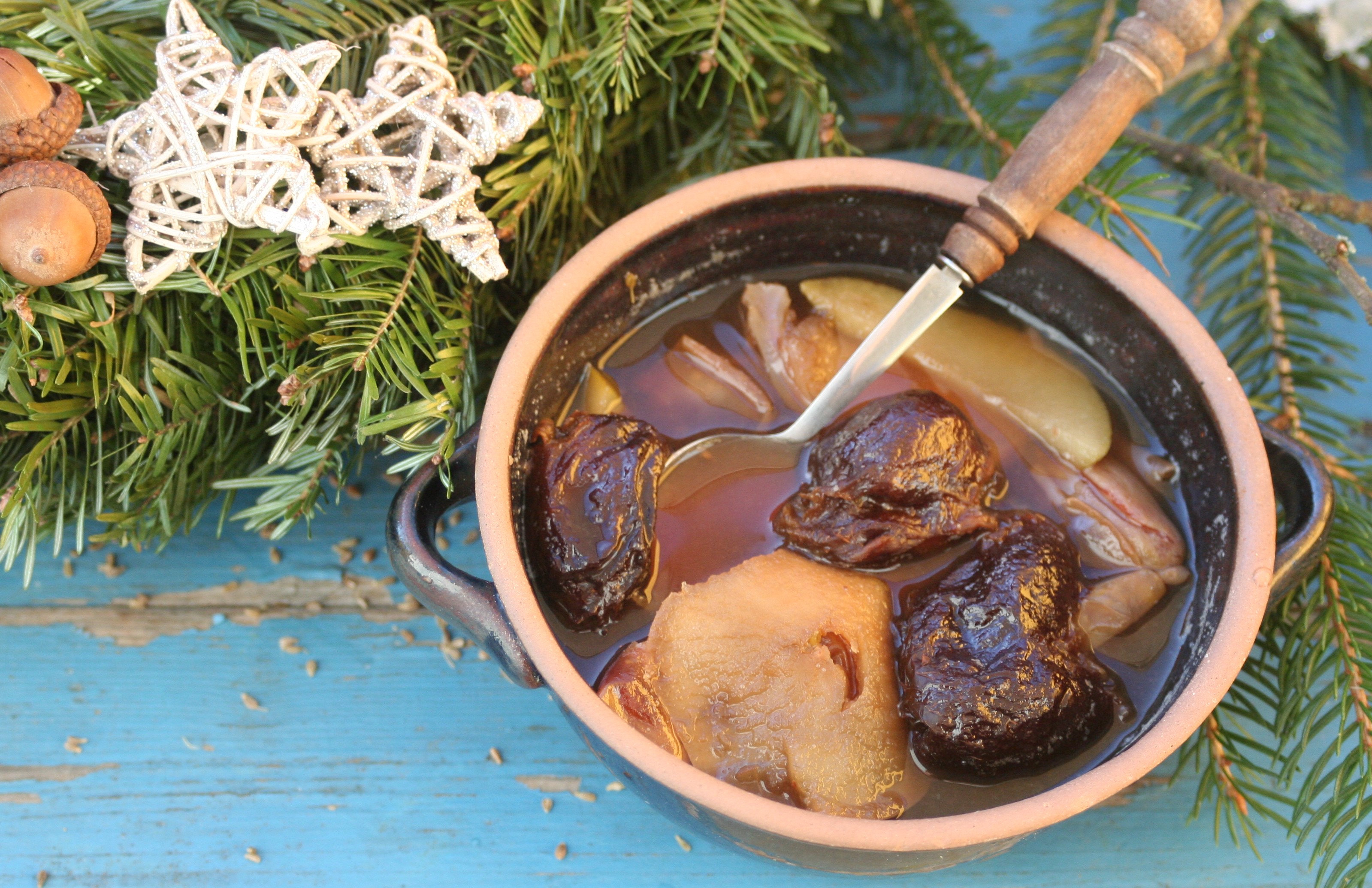 1. Potřebujeme sušené ovoce – švestky, štěpány (hrušky) a křížaly (jablka). Kvalitní sušené švestky by měly být měkké a pěkně vláčné, rozhodně ne příliš vysušené a tvrdé. Koření – celá nebo mletá skořice, anýz, badyán; med, příp. citrónová šťáva a kůra.