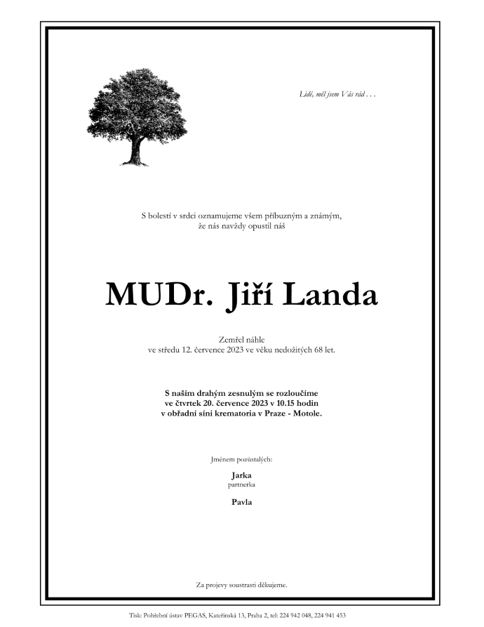 Náhle nás opustil fytoterapeut MUDr. Jiří Landa