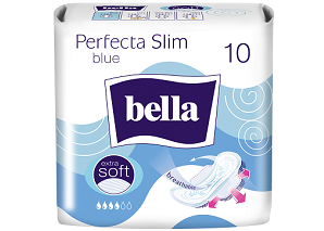 Ultratenké (2mm) hygienické vložky Bella Perfecta Slim blue, které jsou neviditelné i při nošení velmi těsného oblečení. Povrch vložky je pokrytý měkkou, na dotek velmi příjemnou netkanou textilií EXTRA SOFT, která dokonale chrání pokožku před vznikem podráždění. Spodní strana vložky je vyrobena z prodyšné fólie, čímž umožňuje volný přístup vzduchu k pokožce a minimalizuje riziko vzniku infekcí. Široká boční křidélka a speciální systém dodatečné ochrany SEP chrání prádlo před ušpiněním.
