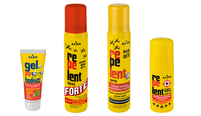 Díky repelentnímu přípravku zvýšíte pravděpodobnost, že na vás klíště vůbec nevyleze. Před klíšťaty i obtížným hmyzem se můžete chránit například repelenty Repelent Forte od ALPY. Při výběru se orientujte především podle obsahu účinné látky a jejího druhu. Procento koncentrace tzv. DEET (diethyltoluamidu) v repelentu by mělo vždy přesáhnout minimálně 10 %, aby správně účinkoval. Pro citlivou dětskou pokožku použijte Repelent pro děti, obsahuje šetrnou látku Insect Repellent 3535 a je vhodný pro děti již od jednoho roku. Když už Vás něco štípne, použijte Gel po bodnutí hmyzem, který příjemně chladí, snižuje pocit pálení a svědění. Lze jej použít také k uklidnění pokožky například po spálení kopřivami.
