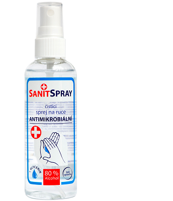 b) Kolik procent alkoholu má čistící sprej SANITSPRAY? 80%