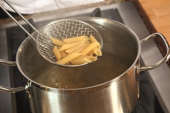Celozrnné těstoviny vaříme v osolené vodě, které je 2,5 x více než těstovin. Respektujeme délku vaření uvedenou na obalu.